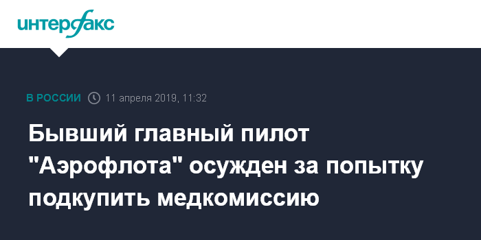 Бывший главный пилот "Аэрофлота" осужден за попытку подкупить медкомиссию