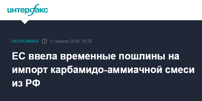 ЕС ввела временные пошлины на импорт карбамидо-аммиачной смеси из РФ