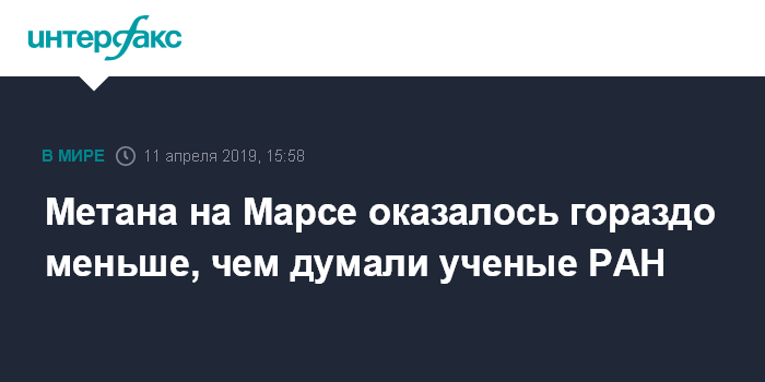 Москва. 11 апреля. INTERFAX.RU - Количество метана на Марсе оказалось существенно меньше чем предполагали ученые, сообщил журналистам академик РАН Лев Зелёный.