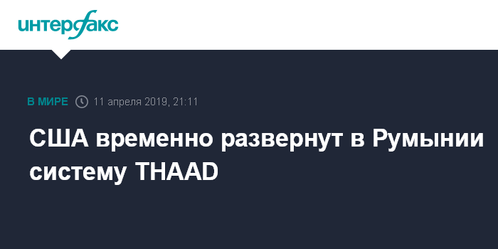 Москва. 11 апреля. INTERFAX.RU - В связи с плановым обновлением натовской системы противоракетной обороны Aegis Ashore в Румынии США временно развернут вместо нее систему ПРО THAAD.