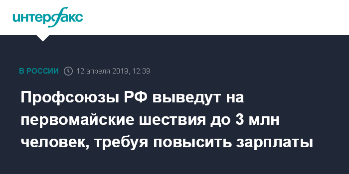 Профсоюзы РФ выведут на первомайские шествия до 3 млн человек, требуя повысить зарплаты