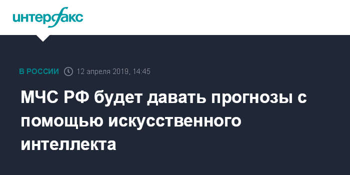 Москва. 12 апреля. INTERFAX.RU - МЧС РФ будет при помощи искусственного интеллекта прогнозировать и предупреждать чрезвычайные ситуации.
