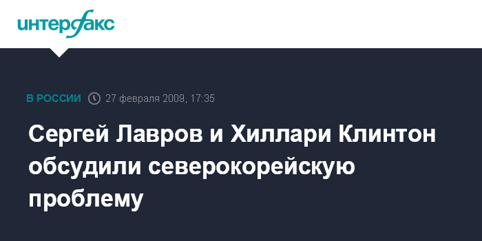 Москва. 27 февраля. INTERFAX.RU - Намерения Пхеньяна запустить ракету, а также предстоящие встречи по Ближнему Востоку обсудили по телефону глава МИД России Сергей Лавров и госсекретарь США Хиллари Клинтон.