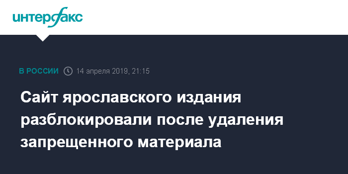 Сайт ярославского издания разблокировали после удаления запрещенного материала