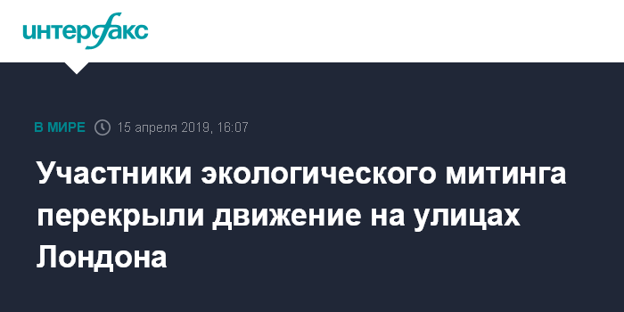 Москва. 15 апреля. INTERFAX.RU - Участники демонстраций в поддержку окружающей среды и экологии блокируют движение на нескольких крупных транспортных магистралях Лондона, чтобы привлечь внимание к проблемам климата, сообщает в понедельник газета The Daily Telegraph.