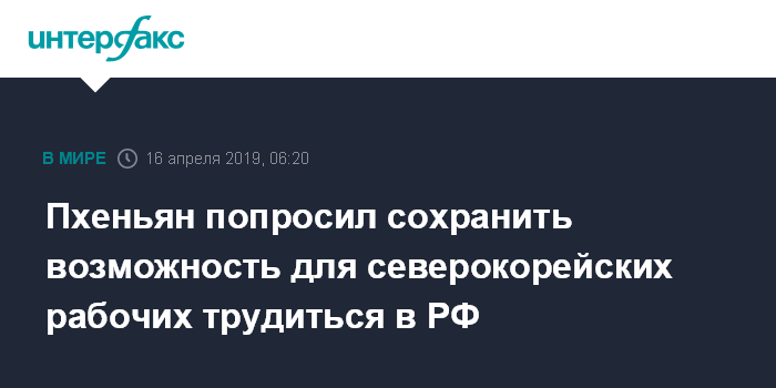"Естественно, это один из источников решения экономических и социальных вопросов - вопрос трудоустройства, 40 тысяч (северокорейских рабочих) у нас работает. По условиям резолюции Совета Безопасности, они должны уехать (с 1 января 2020 г. - ИФ). Это очень сложный вопрос, и пожелания свои они, естественно, высказывали, чтобы людям давали работу",- рассказал Тумусов.