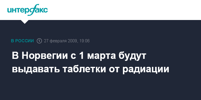 В Норвегии с 1 марта будут выдавать таблетки от радиации