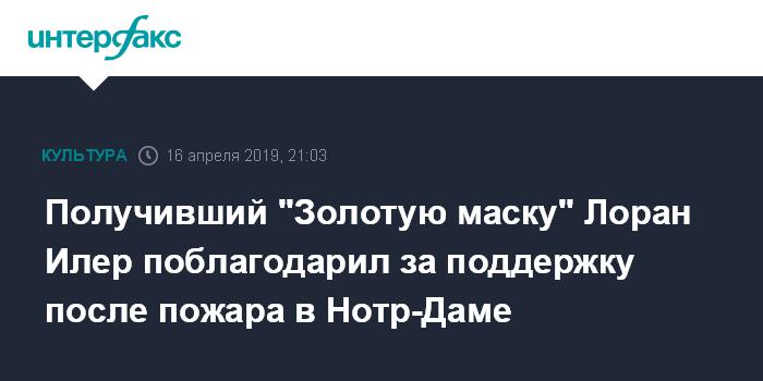 Получивший "Золотую маску" Лоран Илер поблагодарил за поддержку после пожара в Нотр-Даме