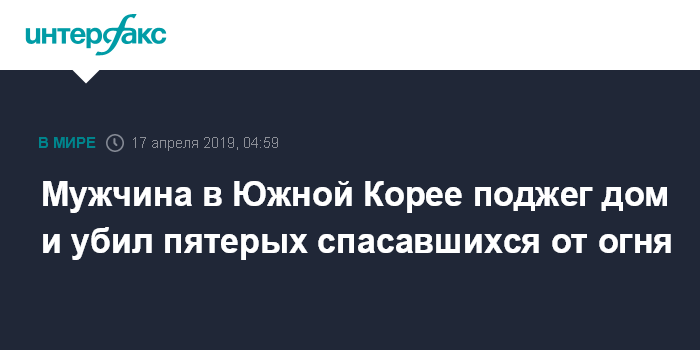 Мужчина в Южной Корее поджег дом и убил пятерых спасавшихся от огня