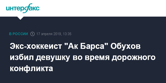 Москва. 17 апреля. INTERFAX.RU - Бывший хоккеист "Ак Барса" Дмитрий Обухов вступил в конфликт с девушкой на улице Дзержинского в Казани 12 апреля, сообщает портал "Бизнес Онлайн"