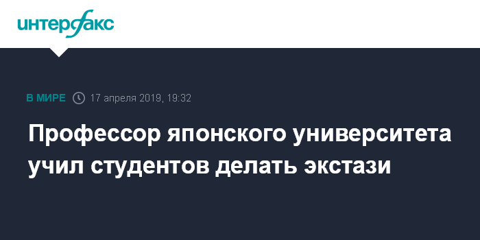 Москва. 17 апреля. INTERFAX.RU - Профессор Татсунори Ивамура, который преподает фармацевтику в университете Мацуямы, признал, что учил своих студентов делать экстази, сообщает Sky News.