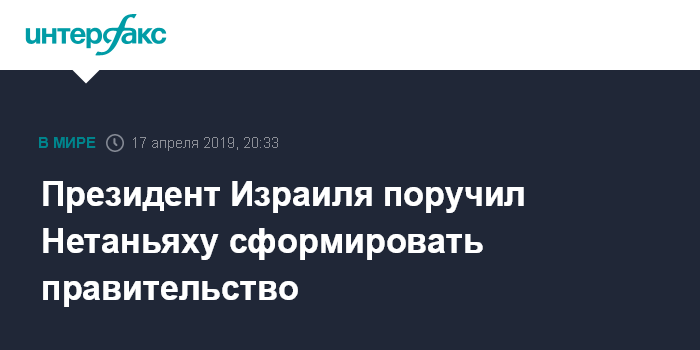 Москва. 17 апреля. INTERFAX.RU - Президент Израиля Реувен Ривлин в среду предоставил действующему премьеру Биньямину Нетаньяху право сформировать новое правительство.