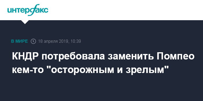 По данным специализирующегося на Северной Корее издания NK News, Пхеньяну не понравилось заявление Помпео о намерениях американской стороны завершить переговоры с КНДР к концу 2019 года.