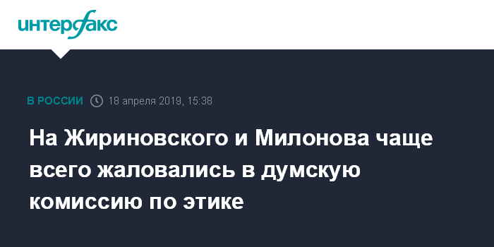 На Жириновского и Милонова чаще всего жаловались в думскую комиссию по этике