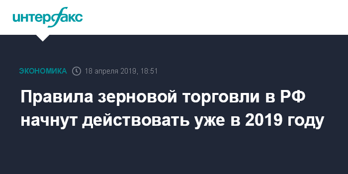 Москва. 18 апреля. INTERFAX.RU - Правила зерновой торговли в России, которые являются национальным аналогом правил GAFTA (Международная организация по торговле зерном и кормами), начнут действовать в России уже в этом году.