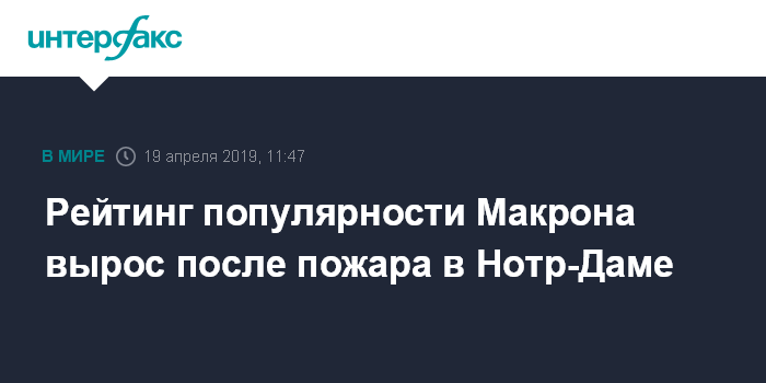 Он также показал, что около 70% французов смотрели по телевизору выступление Макрона после пожара в Нотр-Даме. Кроме того, 62% из них положительно оценили его реакцию и действия после этого происшествия.
