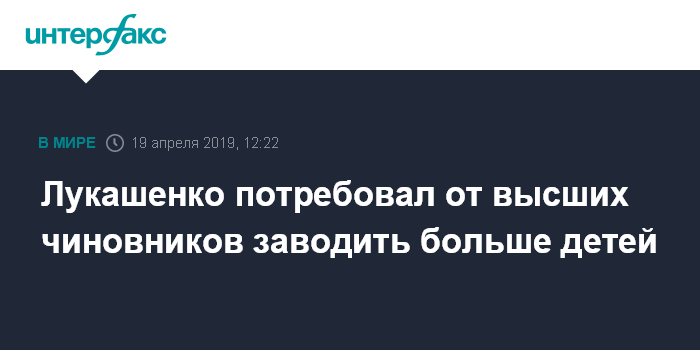 "Посмотрите на себя - сколько у вас детей... Мы думаем - не служил в армии, не пускаем на госслужбу. Нет троих (детей), как у Румаса (премьер-министр страны Сергей Румас - ИФ) четверо - не может быть министром или еще там кем-то", - заявил Лукашенко, обращаясь к чиновникам, в ходе традиционного ежегодного послания белорусскому народу и парламенту.