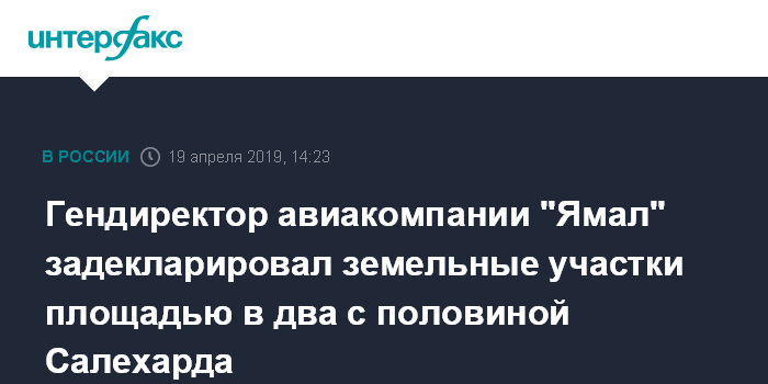 Гендиректор авиакомпании "Ямал" задекларировал земельные участки площадью в два с половиной Салехарда