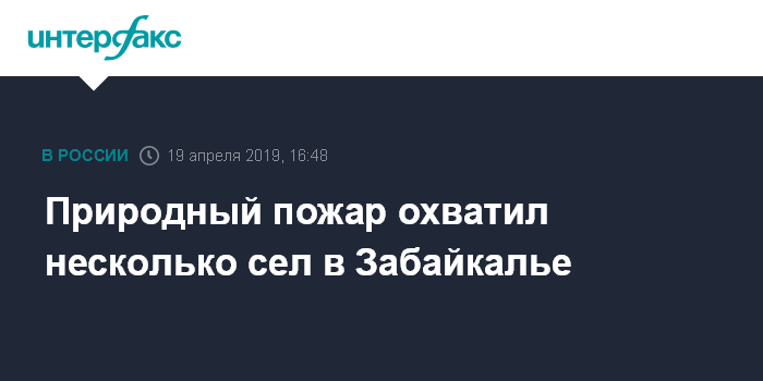 Москва. 19 апреля. INTERFAX.RU - Природный пожар почти полностью уничтожил село на юге Забайкальского края, огонь угрожает соседнему поселению, сообщили "Интерфаксу" в пятницу в местной администрации.
