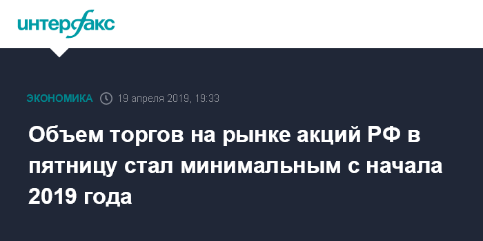 Объем торгов на рынке акций РФ в пятницу стал минимальным с начала 2019 года