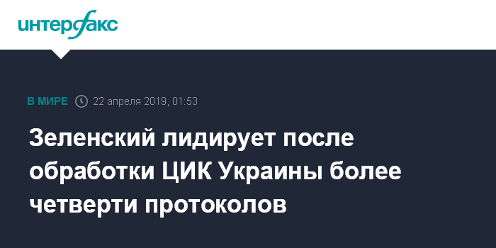 Зеленский лидирует после обработки ЦИК Украины более четверти протоколов