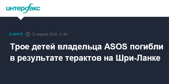 Трое детей владельца ASOS погибли в результате терактов на Шри-Ланке
