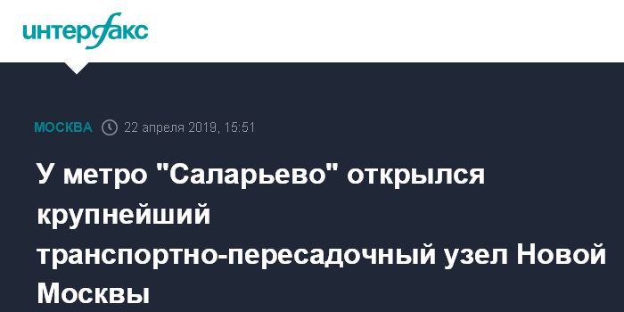 Москва. 22 апреля. INTERFAX.RU - В Москве открылся транспортно-пересадочный узел (ТПУ) "Саларьево" у одноименной станции метро, в составе которого построен международный автовокзал.