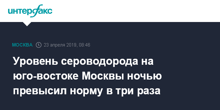Москва. 23 апреля. INTERFAX.RU - Измерительные станции "Мосэкомониторинга" в ночь на вторник зафиксировали превышение допустимой концентрации сероводорода в нескольких районах юго-востока столицы.