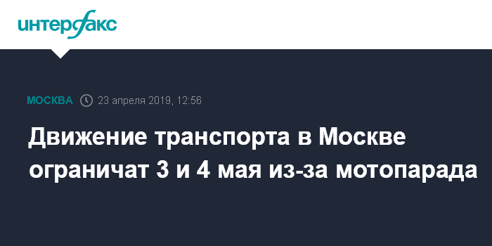 Движение транспорта в Москве ограничат 3 и 4 мая из-за мотопарада