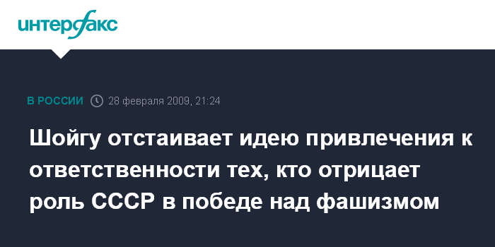 Шойгу отстаивает идею привлечения к ответственности тех, кто отрицает роль СССР в победе над фашизмом