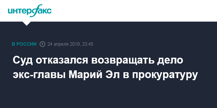 Москва. 24 апреля. INTERFAX.RU - Нижегородский районный суд Нижнего Новгорода в среду отказался по ходатайству защиты вернуть прокуратуре уголовное дело экс-главы Марий Эл Леонида Маркелова, обвиняемого в коррупции. Защита преполагала, что суд найдет нарушения Уголовно-процессуального кодекса, которые исключают вынесенный приговор, сообщила "Интерфаксу" адвокат экс-главы республики Елена Вяткина.