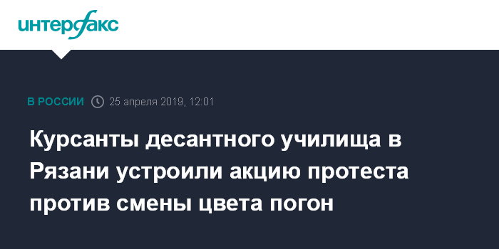 Москва. 25 апреля. INTERFAX.RU - Курсанты Рязанского высшего воздушно-десантного командного училища (РВВДКУ) в ночь на 24 апреля в качестве акции протеста оставили погоны нового образца у памятника генералу Маргелову, сообщил "Интерфаксу" источник в училище.