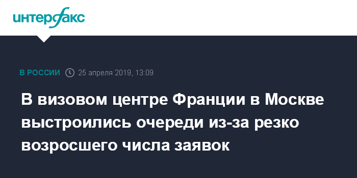 Ситуация в визовом центре Франции на Проспекте мира в Москве начала ухудшаться во второй половине апреля. В социальных сетях появились сообщения пользователей, что документы оформляются дольше обычного, а в самом центре образовались большие очереди желающих подать документы на получение шенгенских виз. Время ожидания может достигать пяти часов. При этом на сайте визового центра VFS Global появилось сообщение, что консульство приостановило систему рассмотрения заявок на визы в течение 48 часов.