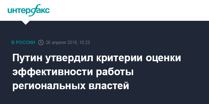 Путин утвердил критерии оценки эффективности работы региональных властей