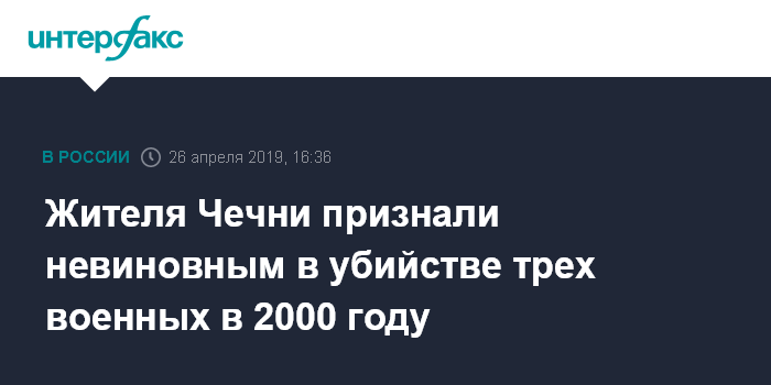 Москва. 26 апреля. INTERFAX.RU - Северо-Кавказский окружной военный суд оправдал жителя Чечни Расамбека Бекмурзаева, которого обвиняли в убийстве трех военнослужащих в 2000 году, сообщили в пятницу в пресс-службе суда.