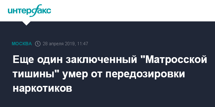 Москва. 28 апреля. INTERFAX.RU - Скончался еще один арестант СИЗО "Матросская тишина", госпитализированный после передозировки наркотиками, сообщил "Интерфаксу" в воскресенье осведомленный источник.
