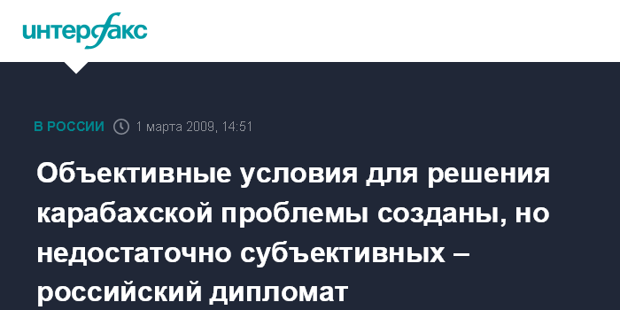 Объективные условия для решения карабахской проблемы созданы, но недостаточно субъективных – российский дипломат