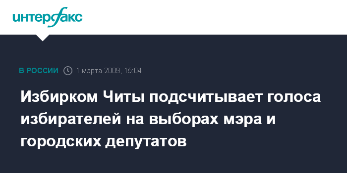 Чита. 1 марта. INTERFAX.RU - В Чите завершено голосование за кандидатов в мэры и в депутаты городской думы, избирательная комиссия приступает к подсчету голосов.