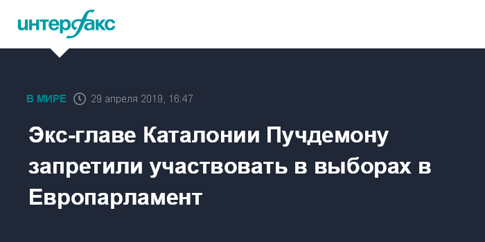 Экс-главе Каталонии Пучдемону запретили участвовать в выборах в Европарламент