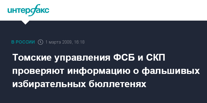 Томск. 1 марта. INTERFAX.RU - Следственное управление при СКП РФ по Томской области проводит проверку по заявлению об обнаружении фальшивых избирательных бюллетеней на выборах мэра Томска.