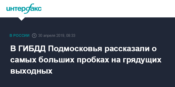В пресс-службе главка "Интерфаксу" сообщили, что инспекция ожидает наибольшей загруженности дорог 30 апреля, 1, 5, 8 и 12 мая.