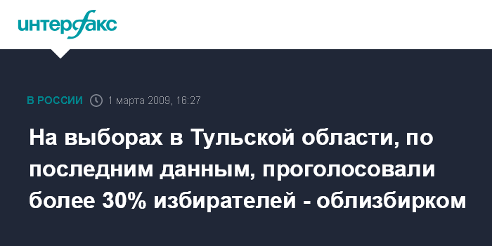На выборах в Тульской области, по последним данным, проголосовали более 30% избирателей - облизбирком
