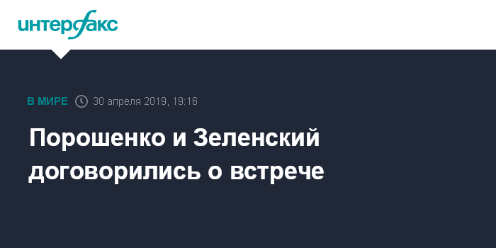 Москва. 30 апреля. INTERFAX.RU - Президент Украины Петр Порошенко во вторник позвонил своему преемнику Владимиру Зеленскому и поздравил его с победой на выборах, они договорились вскоре встретиться и обсудить политику на российском направлении.