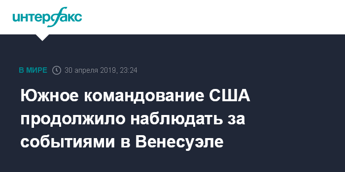 Москва. 30 апреля. INTERFAX.RU - В Южном командовании ВС США заявили во вторник, что получают информацию о ситуации в Венесуэле, но каких-либо новых задач пока не выполняют.