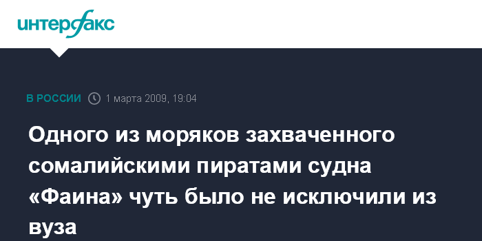 Одного из моряков захваченного сомалийскими пиратами судна «Фаина» чуть было не исключили из вуза