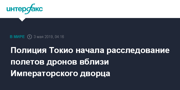 Москва. 3 мая. INTERFAX.RU - Японская полиция изучает ряд свидетельских показаний о беспилотниках, которые летали в четверг вечером возле Императорского дворца и других мест в Токио, связанных с императорской семьей, сообщает газета Mainichi со ссылкой на осведомленные источники.