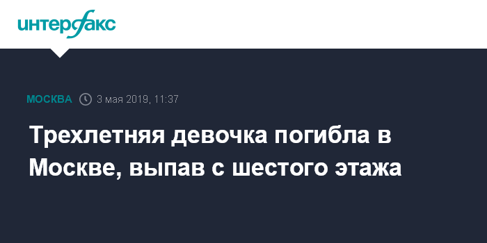 Трехлетняя девочка погибла в Москве, выпав с шестого этажа