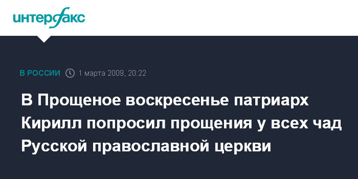 Между тем, по мнению патриарха Кирилла, "то, что Прощеное воскресенье возвращается в нашу жизнь, говорит о том, что новомодные представления о нравственности, которые эту нравственность разрушают, не порабощают жизни нашего народа".