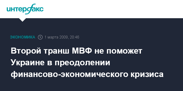 Второй транш МВФ не поможет Украине в преодолении финансово-экономического кризиса