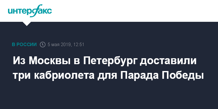 Москва. 5 мая. INTERFAX.RU - Три кабриолета ЗиЛ-41041 АМГ, ранее участвовавшие в Парадах Победы в Москве, доставлены в Санкт-Петербург, сообщили в воскресенье в пресс-службе Западного военного округа (ЗВО).